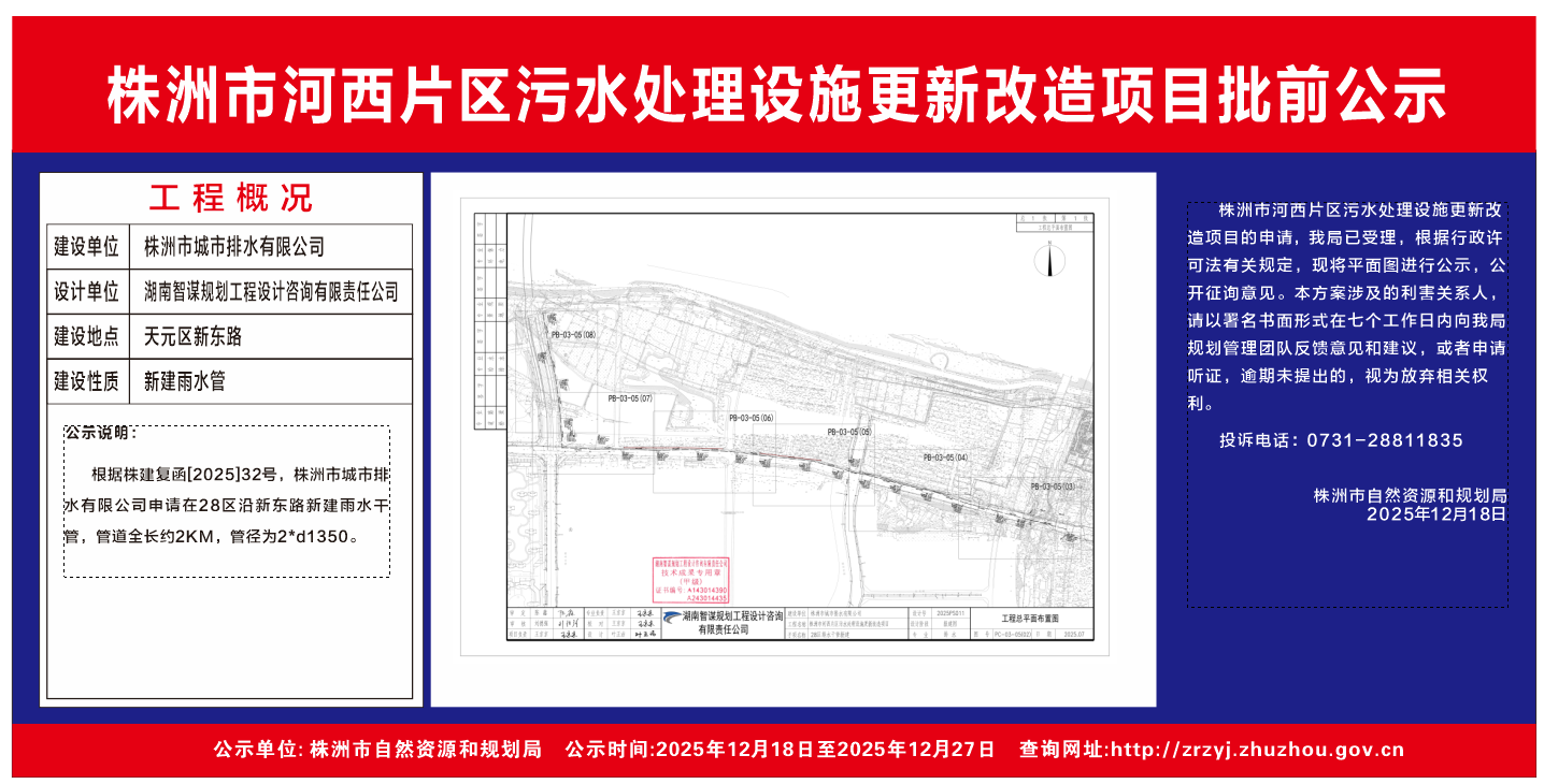 株洲市河西片区污水处理设施更新改造项目批前公示