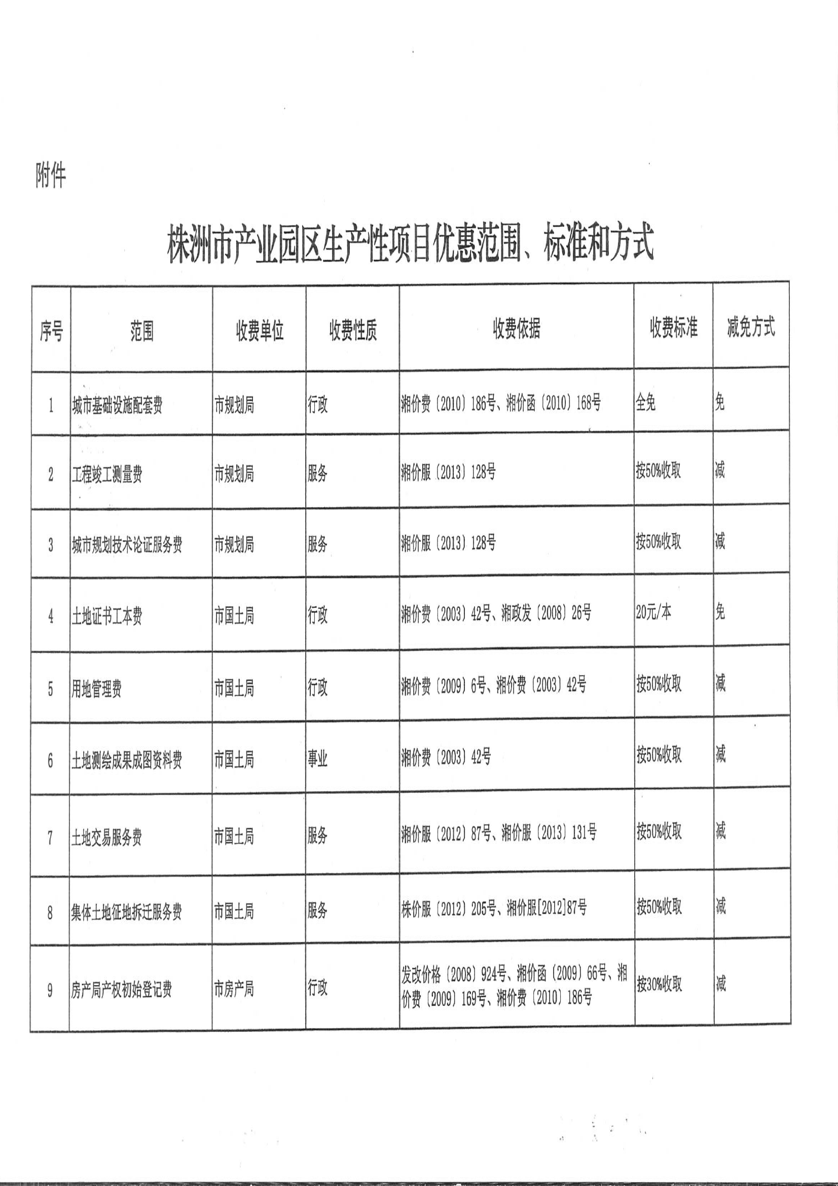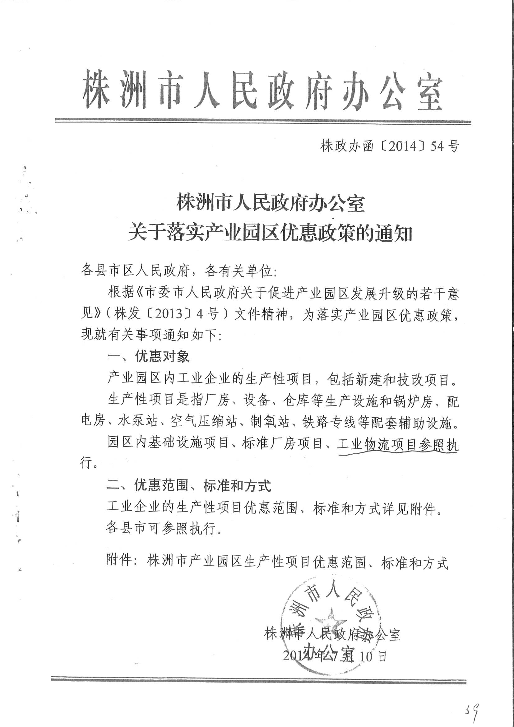 株洲市人民政府办公室关于落实产业园区优惠政策的通知
