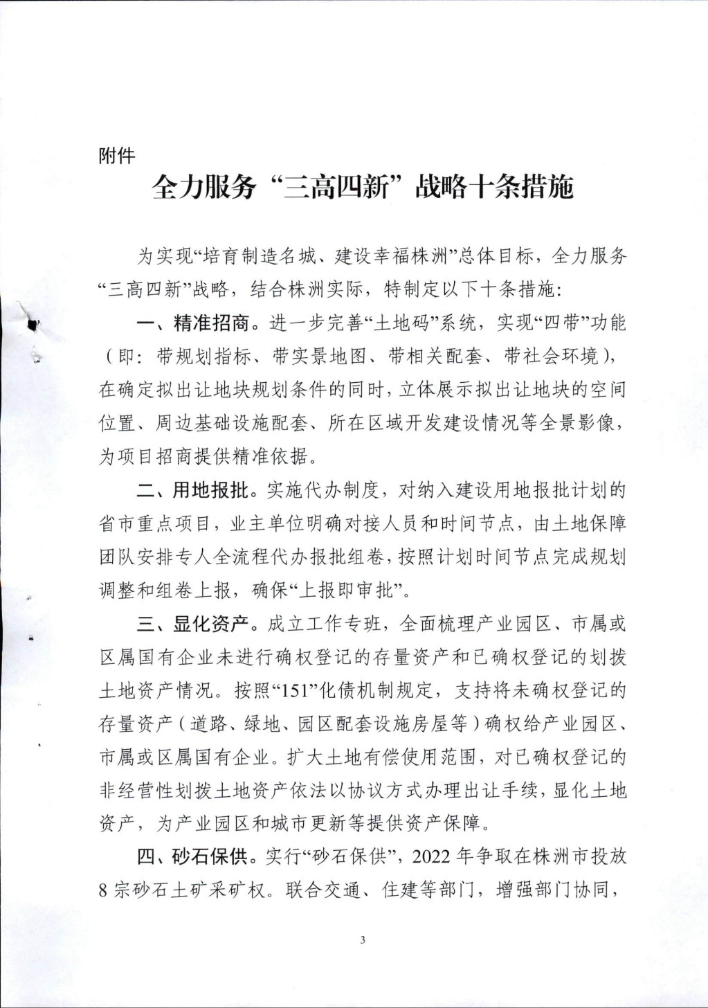 株洲市自然资源和规划局办公室关于印发《全力服务“三高四新”战略十条措施》的通知