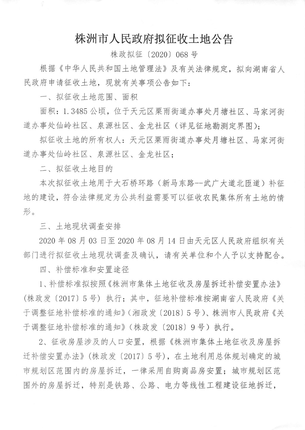 拟征收土地公告--大石桥环路(新马东路--武广大道北匝道)