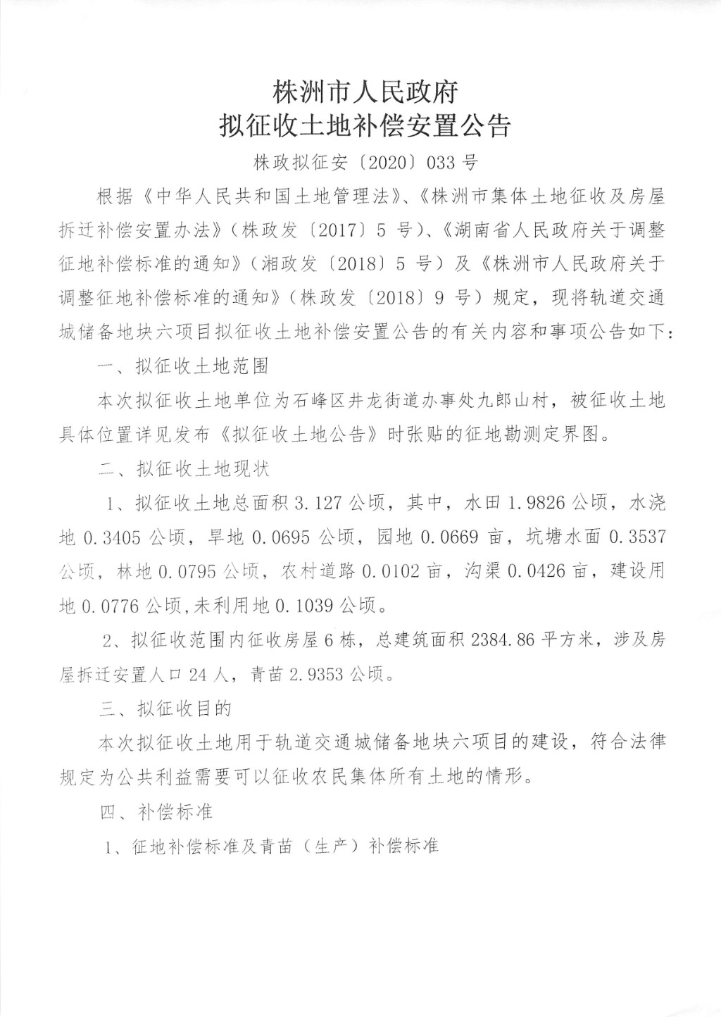 拟征收土地补偿安置公告--轨道交通城储备地块六