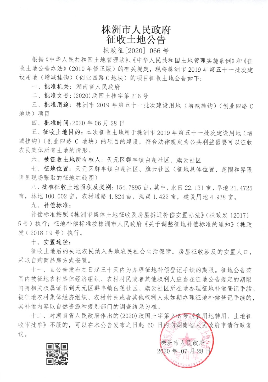 征收土地公告--创业四路C地块