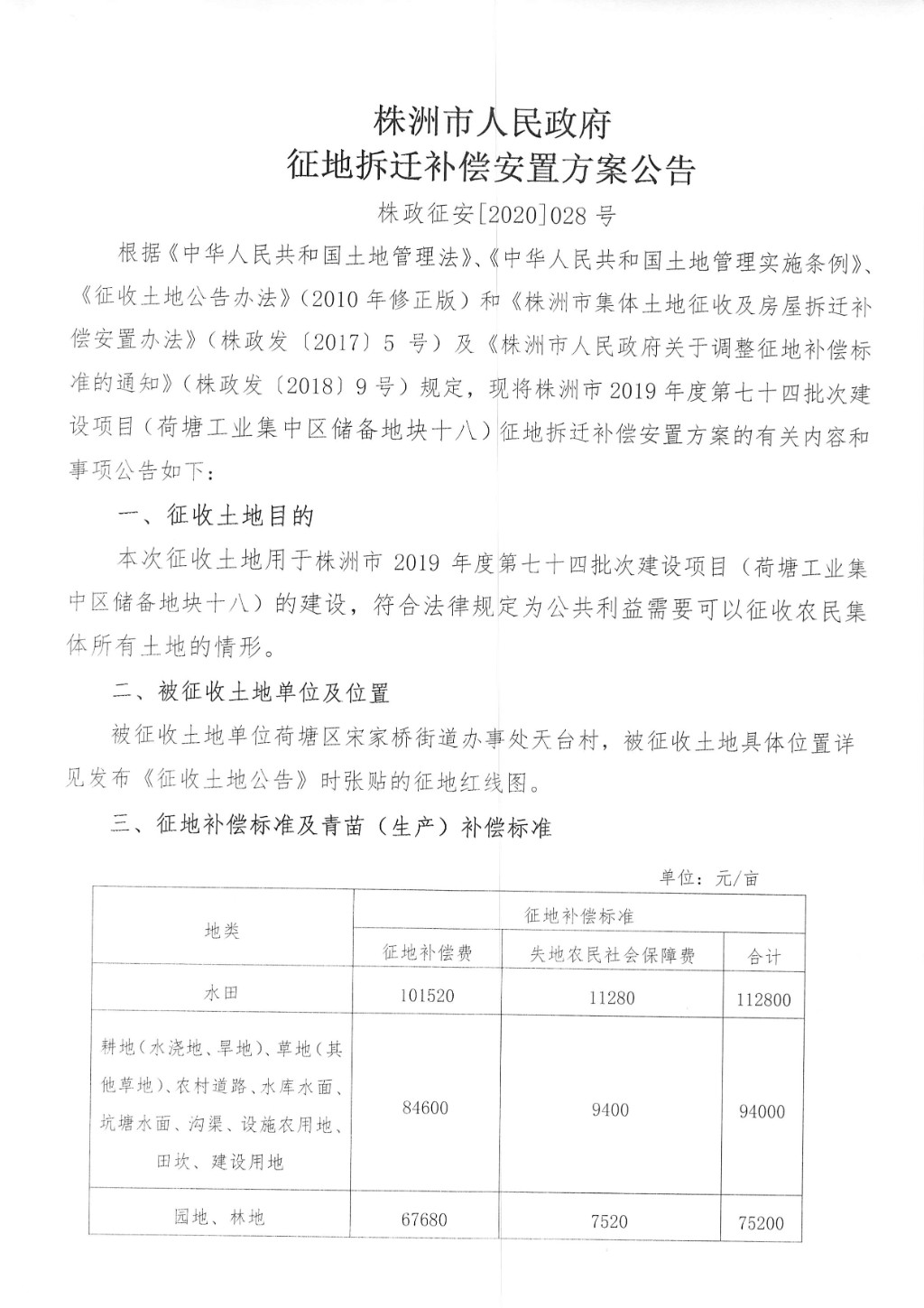 征地拆迁补偿安置方案公告--荷塘工业集中区储备地块十八