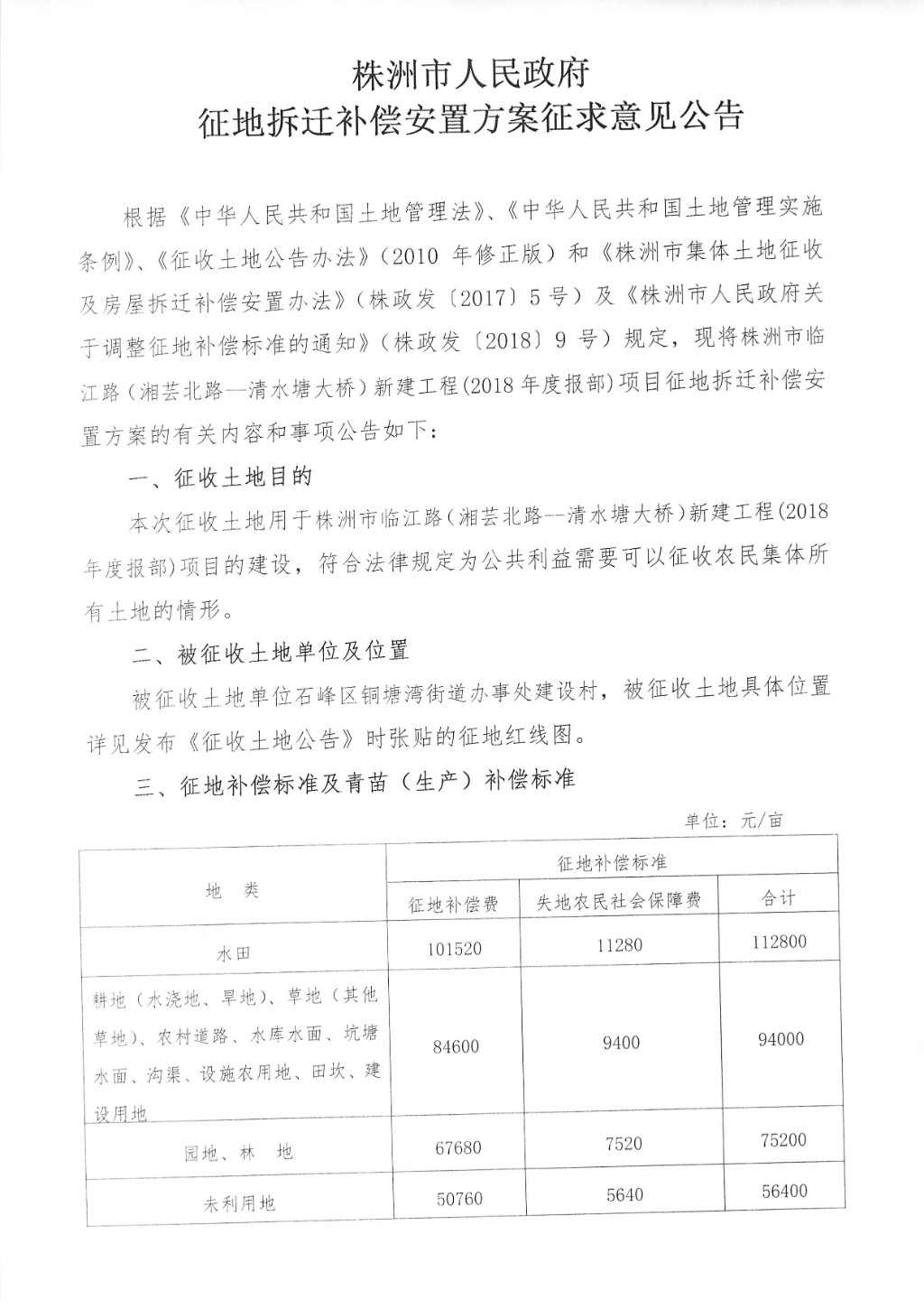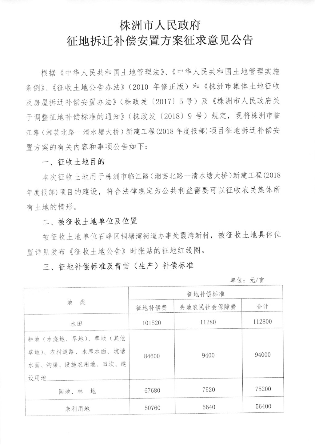 征地拆迁补偿安置方案征求意见公告--株洲市临江路(湘芸北路--清水塘大桥)