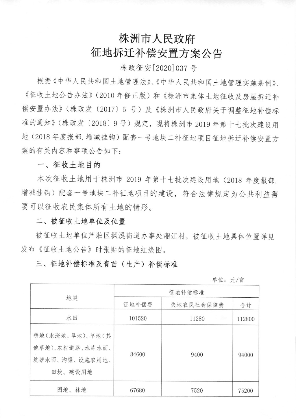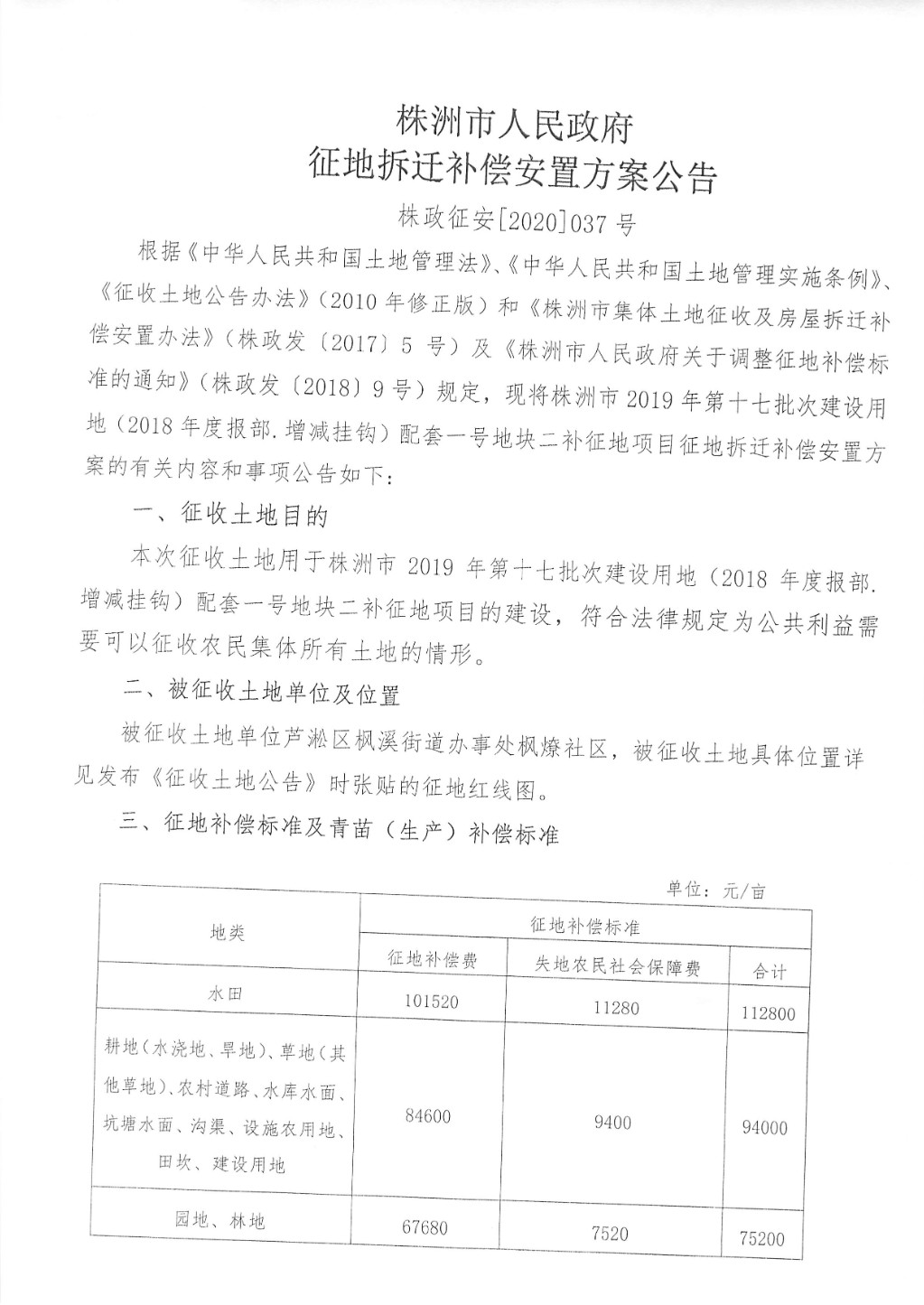 征地拆迁补偿安置方案公告--配套一号地块二补征地