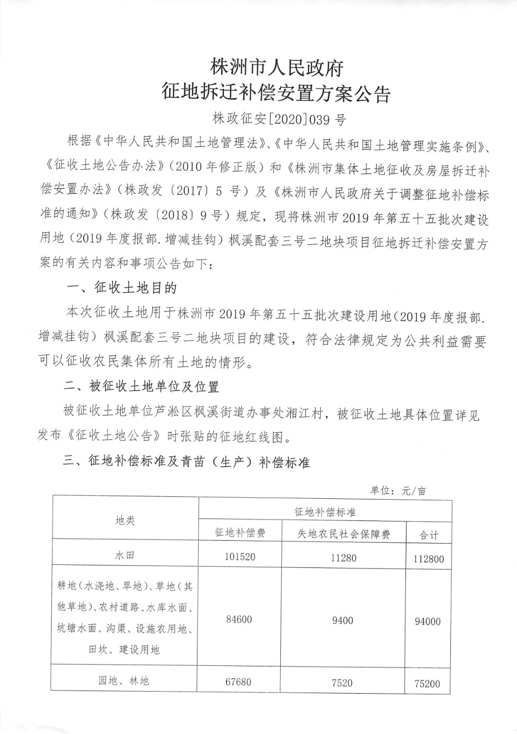 征地拆迁补偿安置方案公告---枫溪配套三号二地块项目