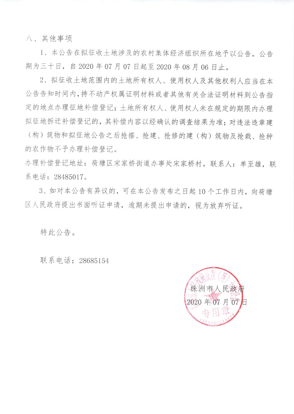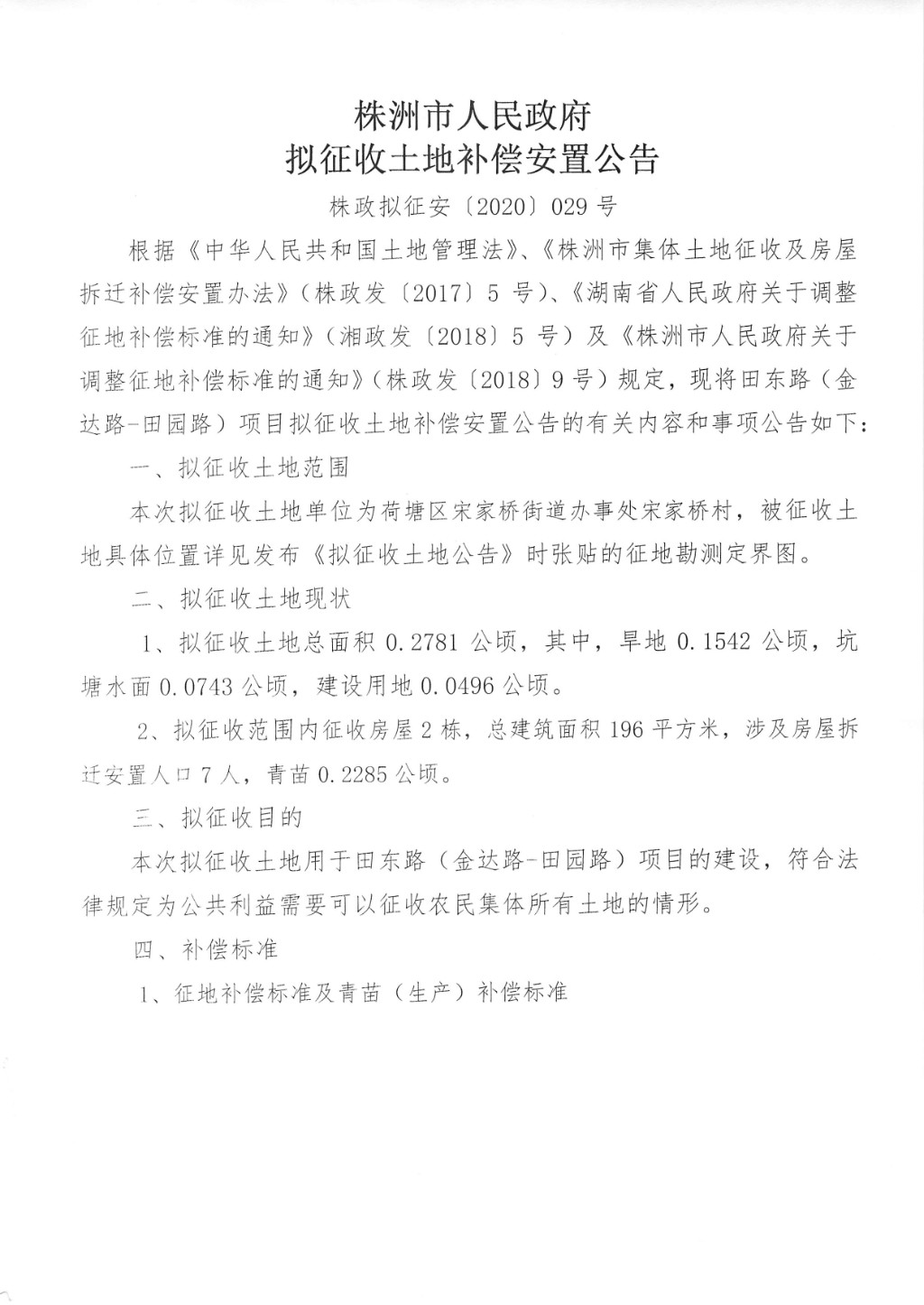 拟征收土地补偿安置公告--田东路(金达路--田园路)