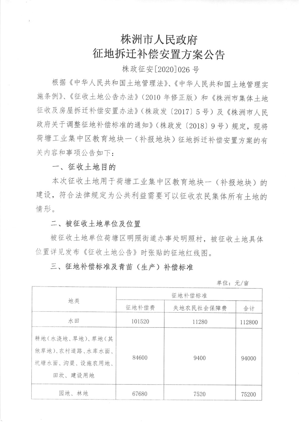 征地拆迁补偿安置方案公告--荷塘工业集中区教育地块一(补报地块)