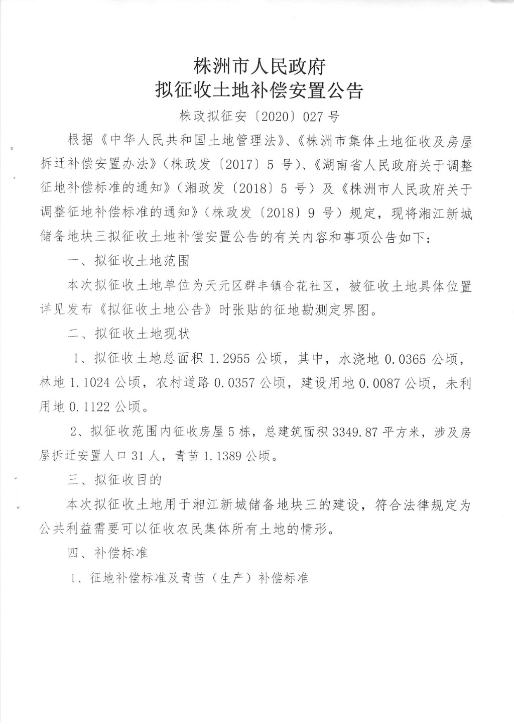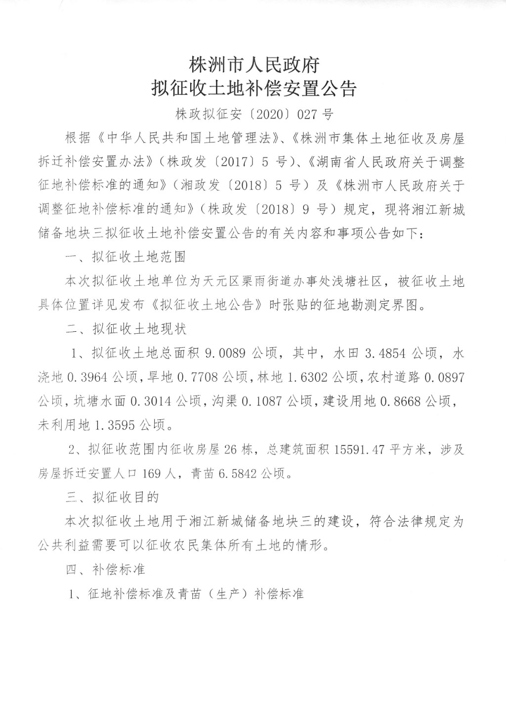 拟征收土地补偿安置公告--湘江新城储备地块三