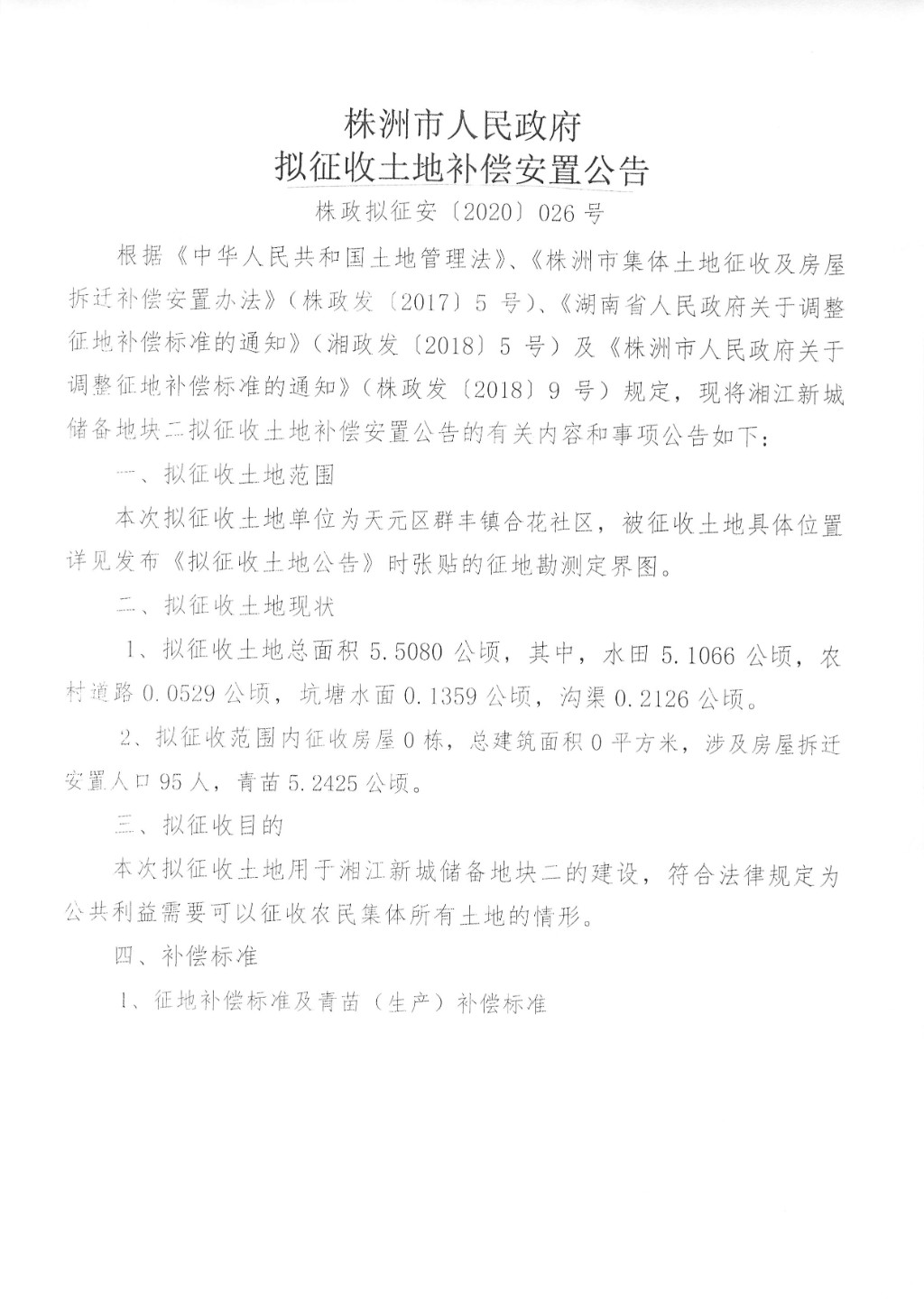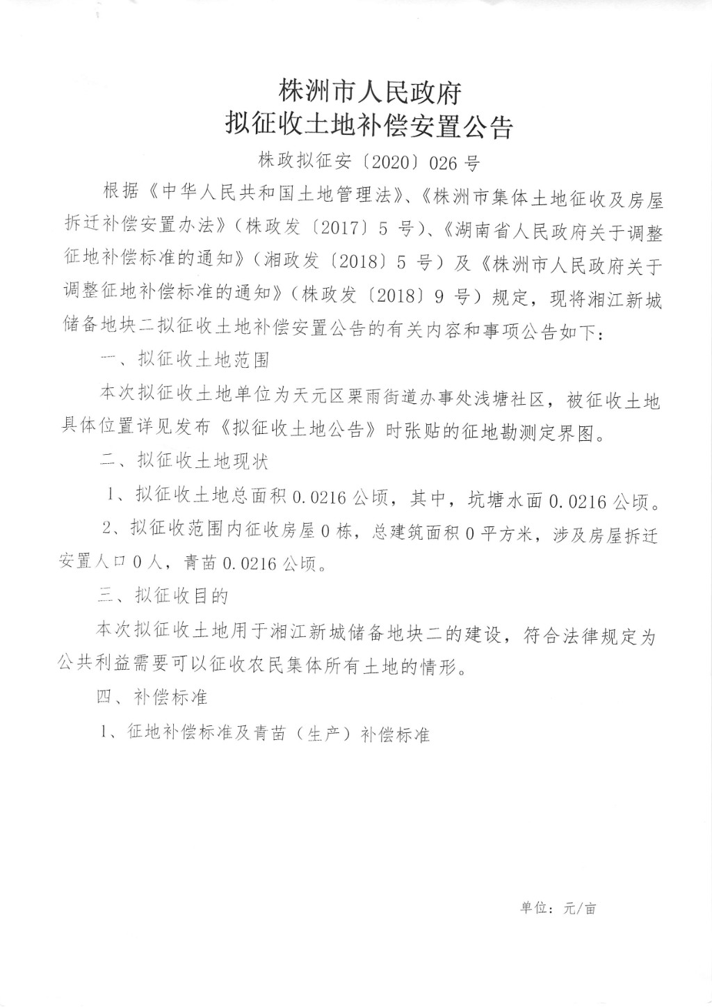 拟征收土地补偿安置公告---湘江新城储备地块二