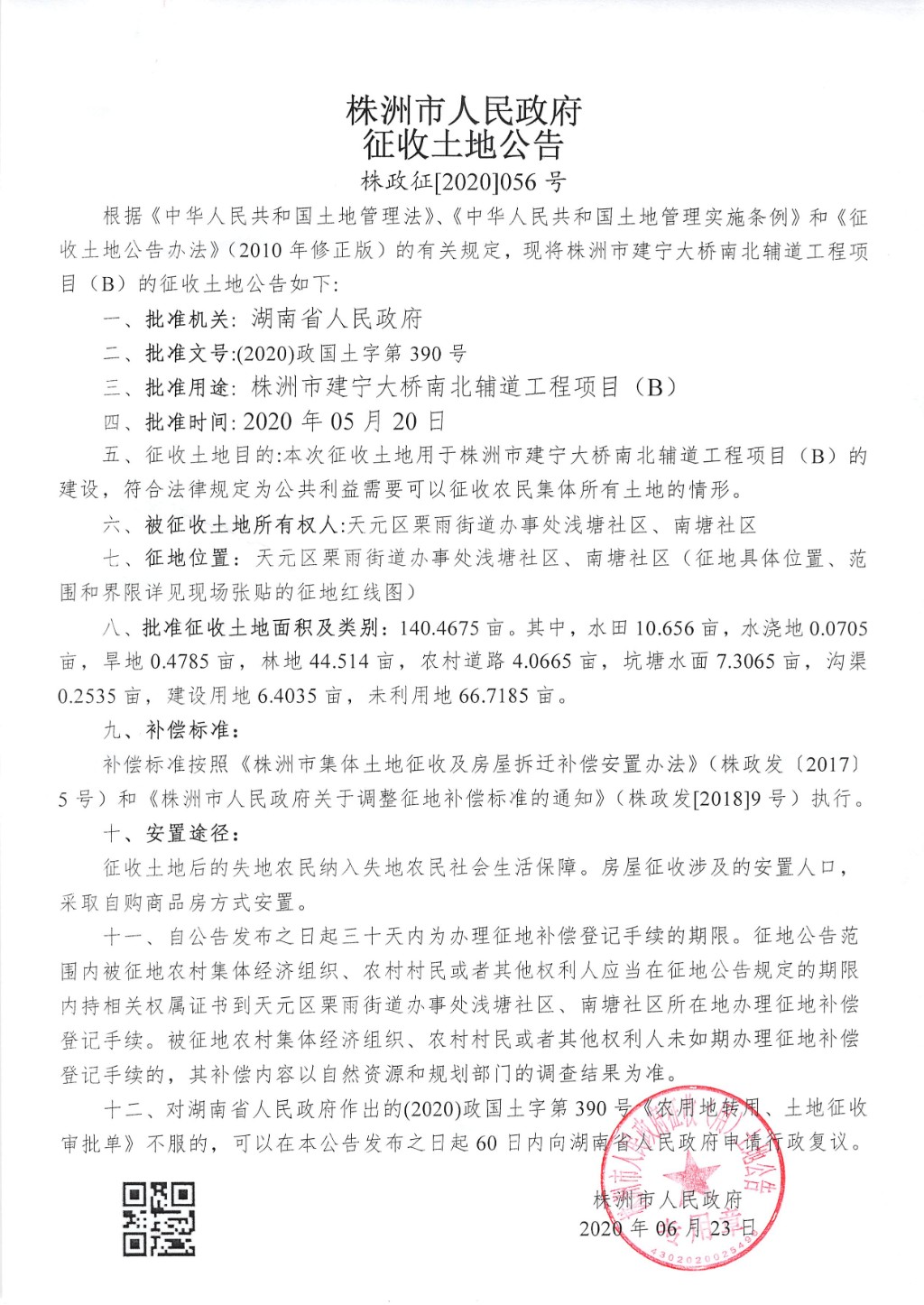 征收土地公告--株洲市建宁大桥南北辅道工程项目(B)