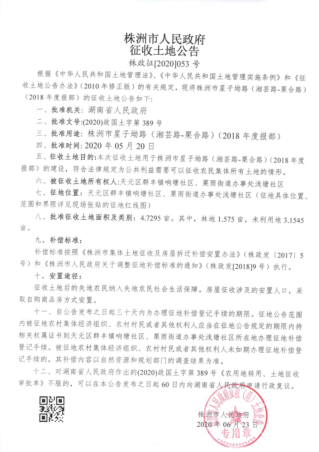 征收土地公告--星子坳路(湘芸路--栗合路)