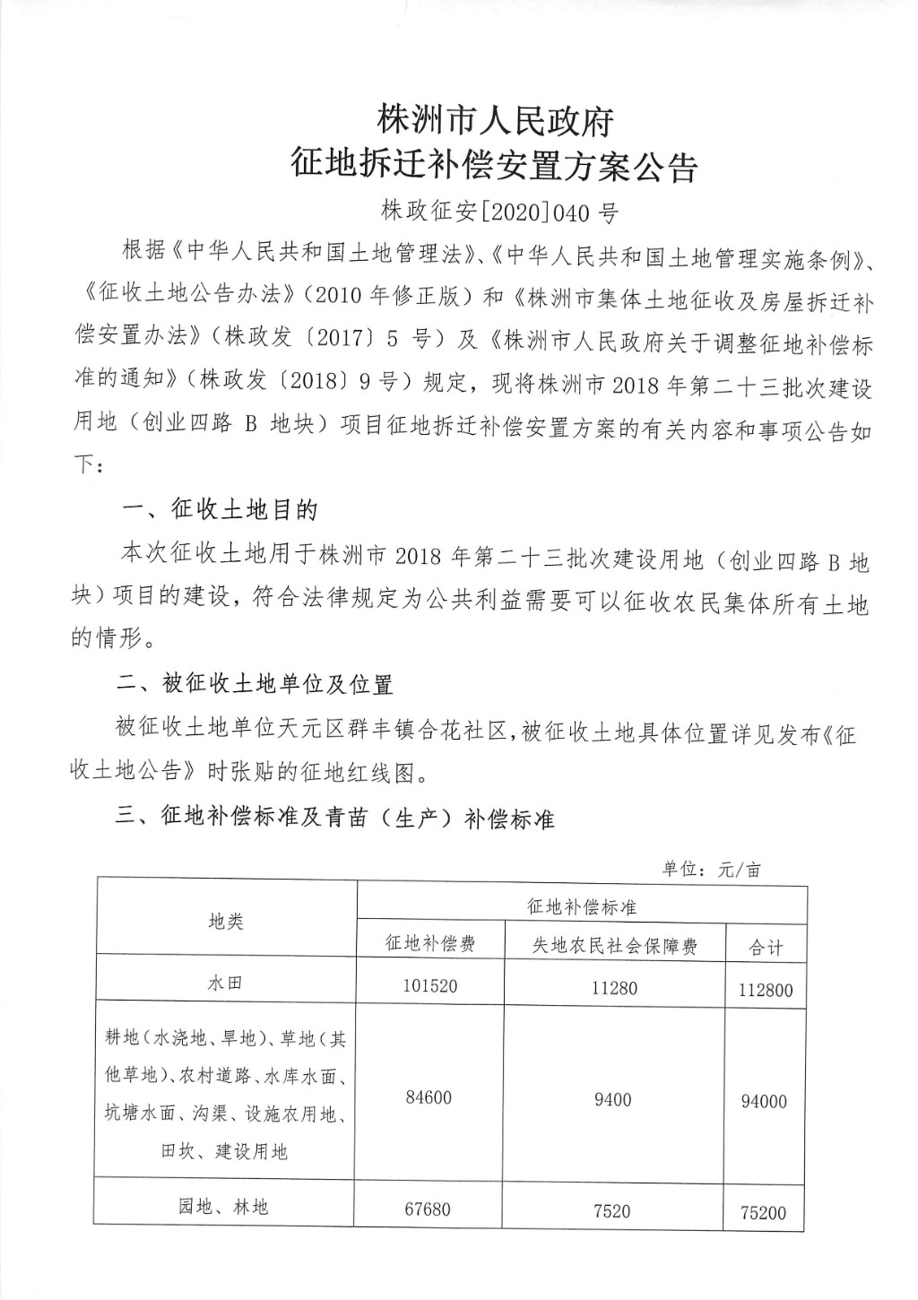 征地拆迁补偿安置方案公告--创业四路B地块