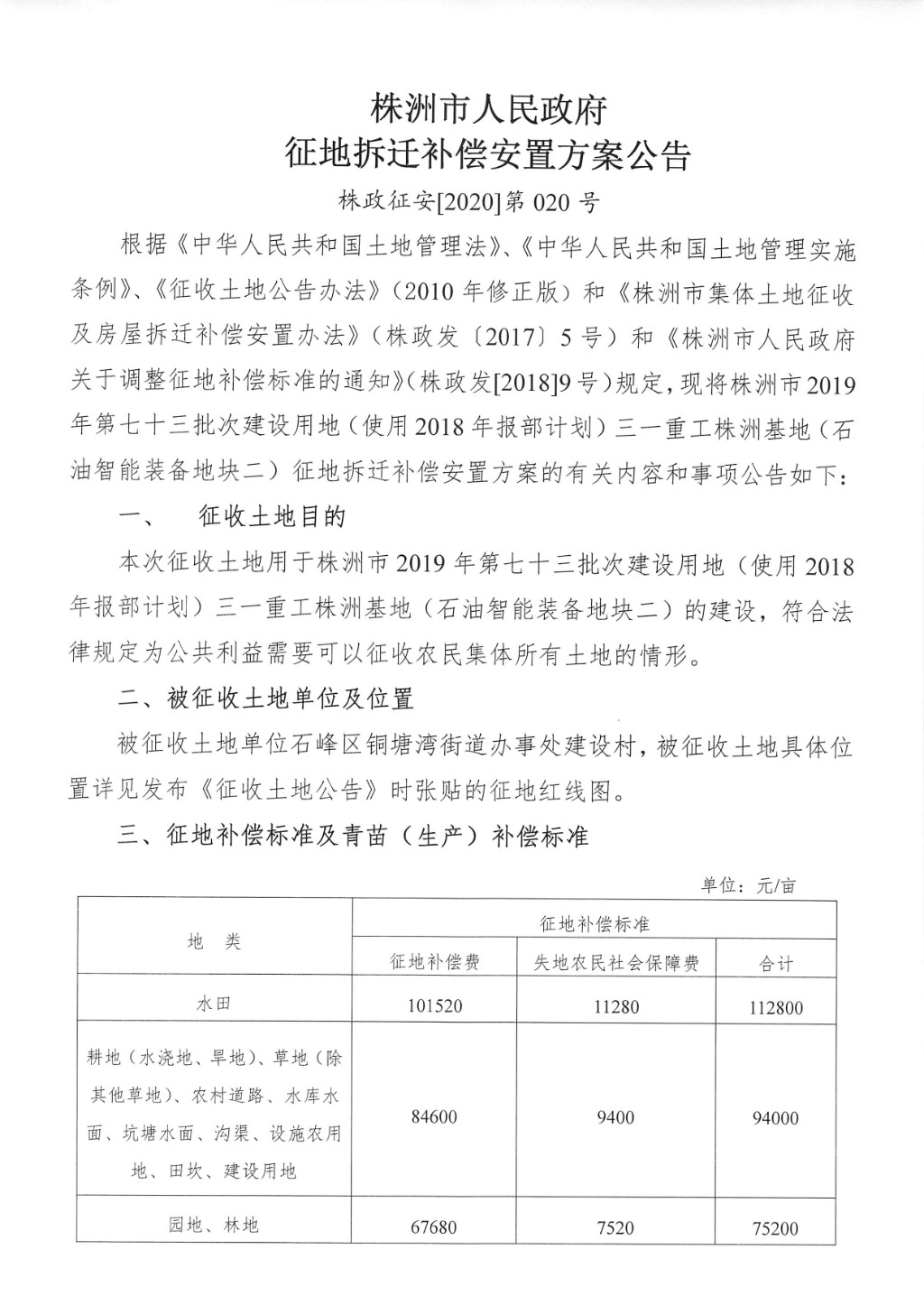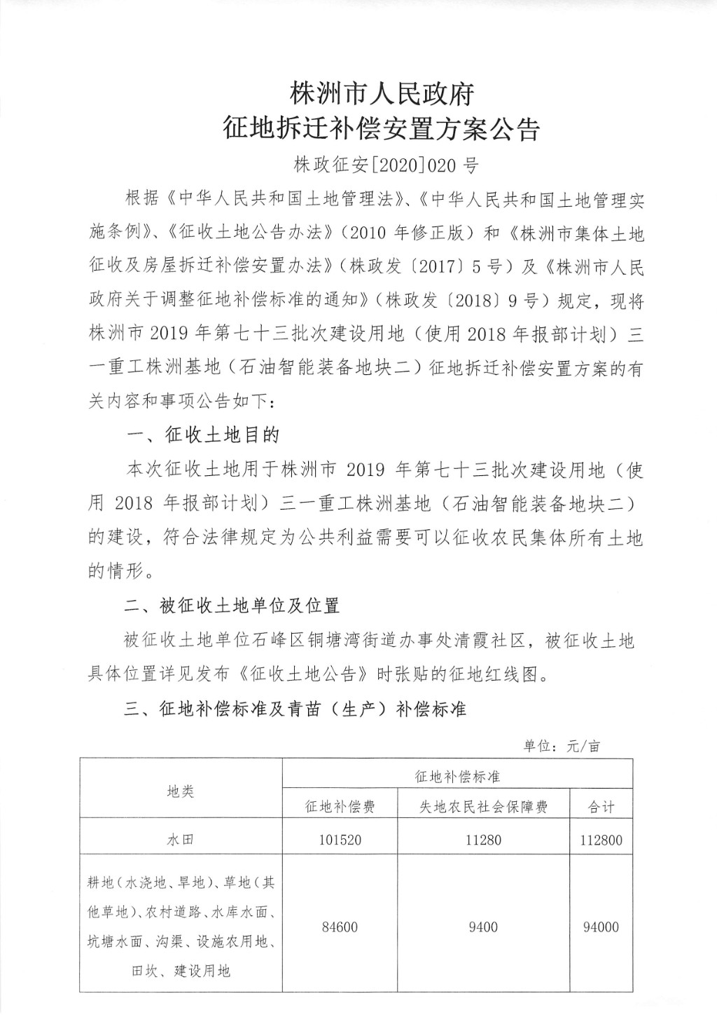 征地拆迁补偿安置方案公告--石油智能装备地块二-