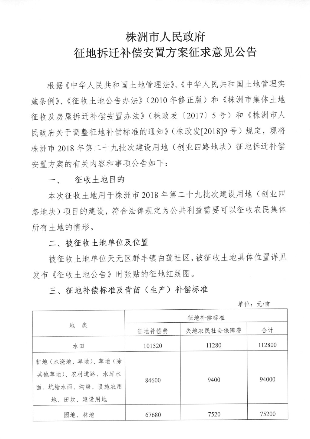 征地拆迁补偿安置方案征求意见公告--创业四路地块