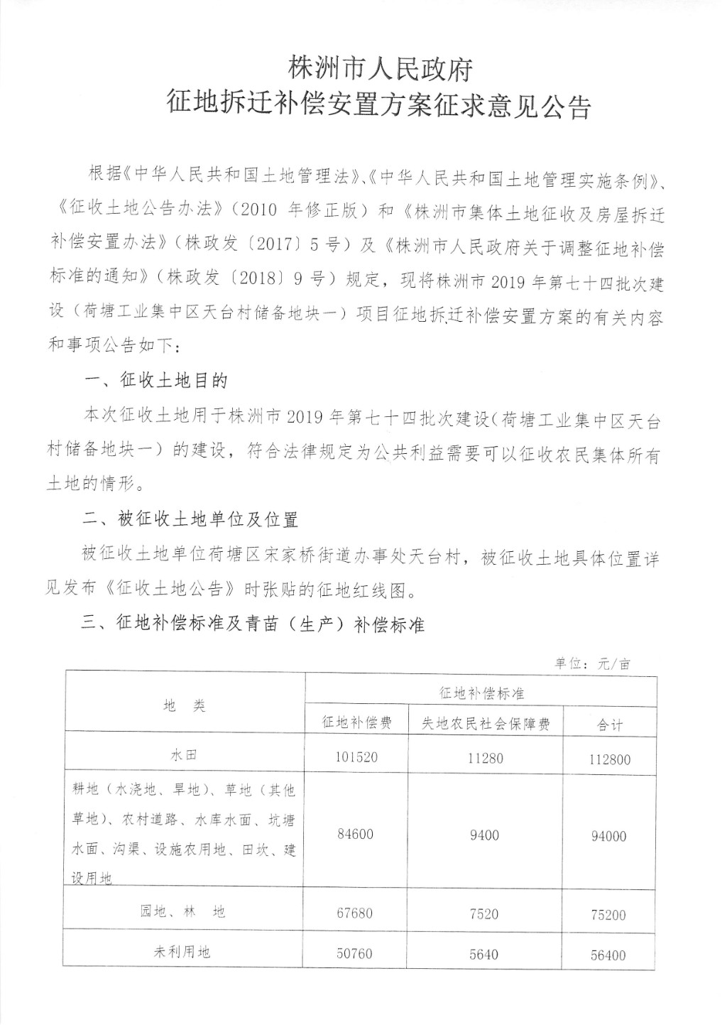 征地拆迁补偿安置方案征求意见公告--荷塘工业集中区天台村储备地块一
