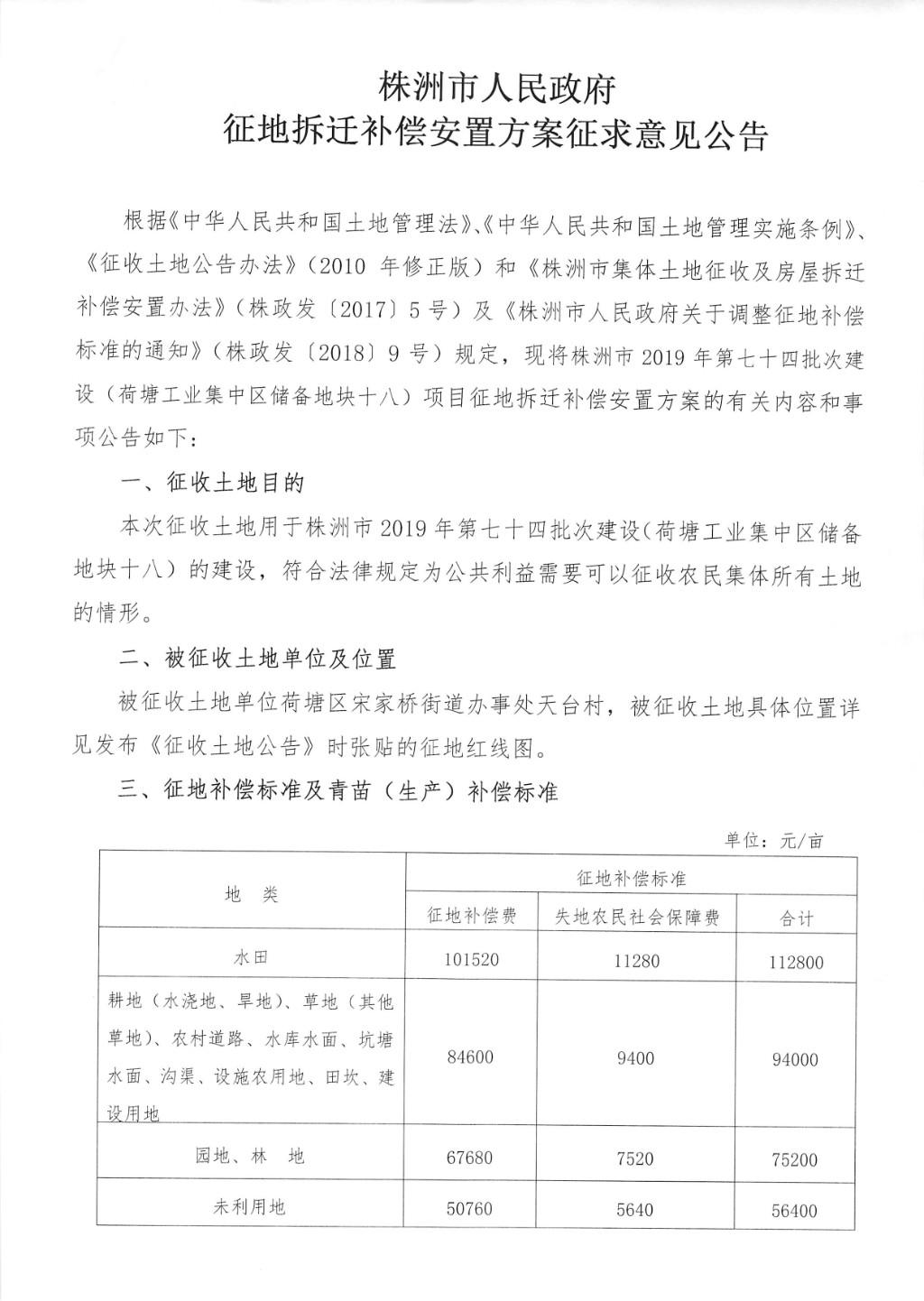 征地拆迁补偿安置方案征求意见公告--荷塘工业集中区储备地块十八