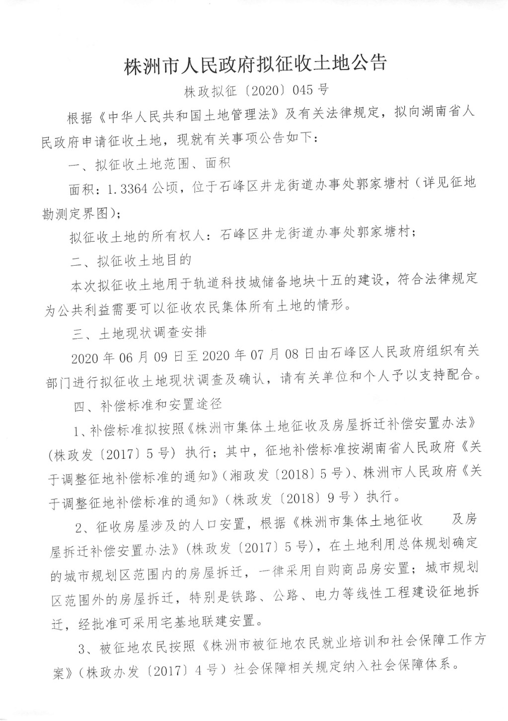 拟征收土地公告--轨道科技城储备地块十五