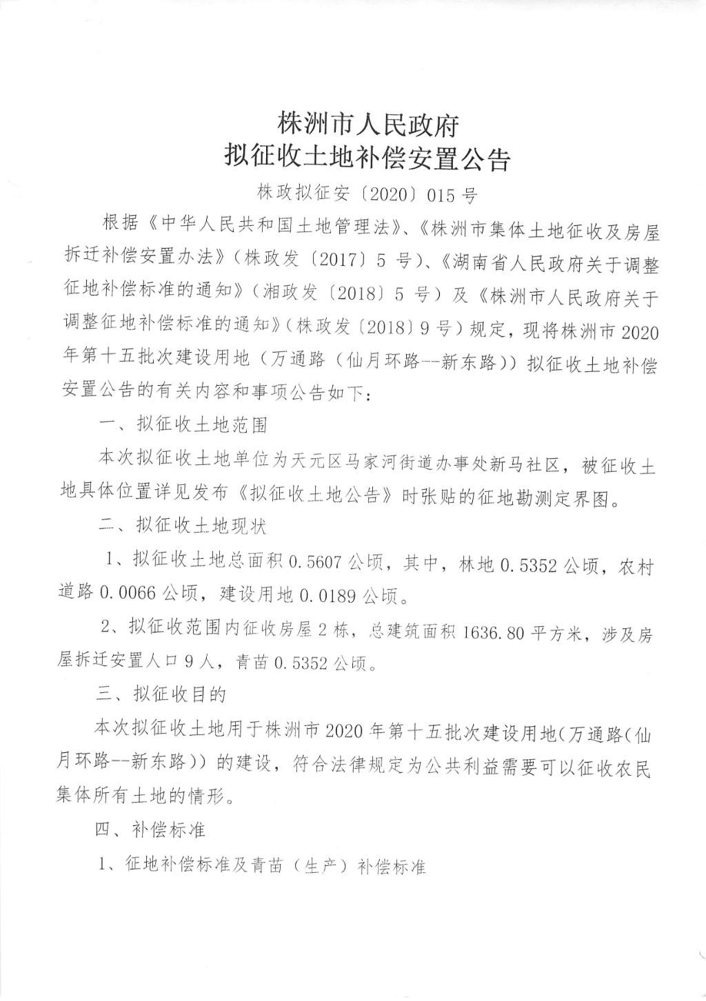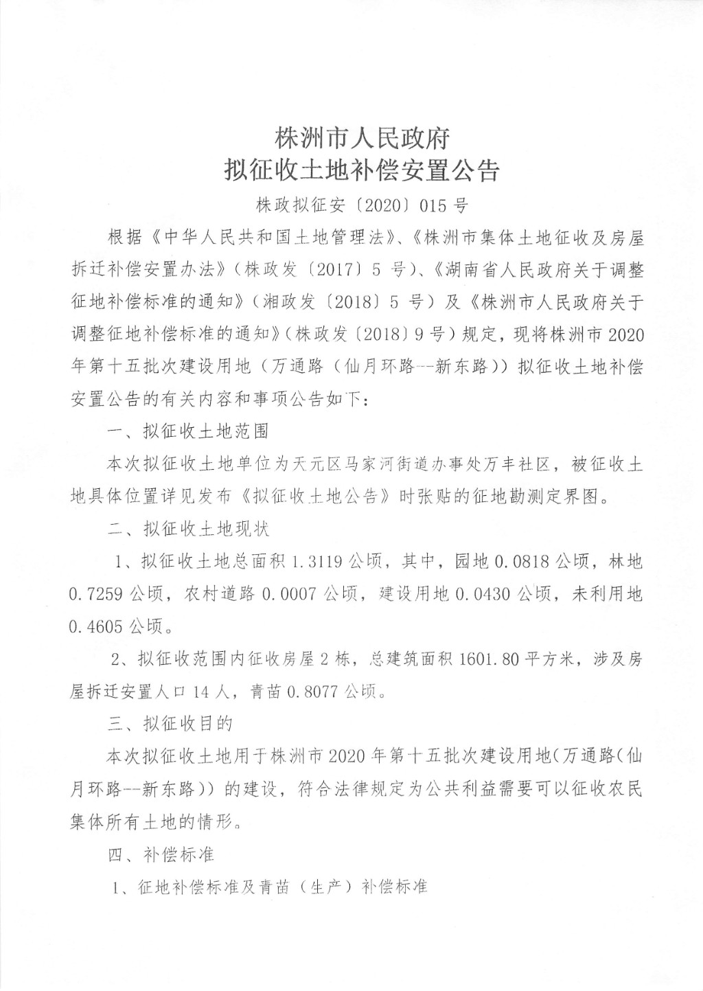 拟征收土地补偿安置公告--万通路(仙月环路--新东路)