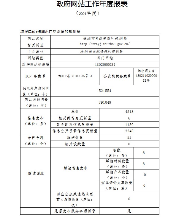 株洲市自然资源和规划局2024年政府网站工作年度报表