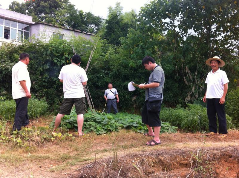 天元征拆所工作人员在栗办栗雨西路延伸段项目进行土地丈量工作