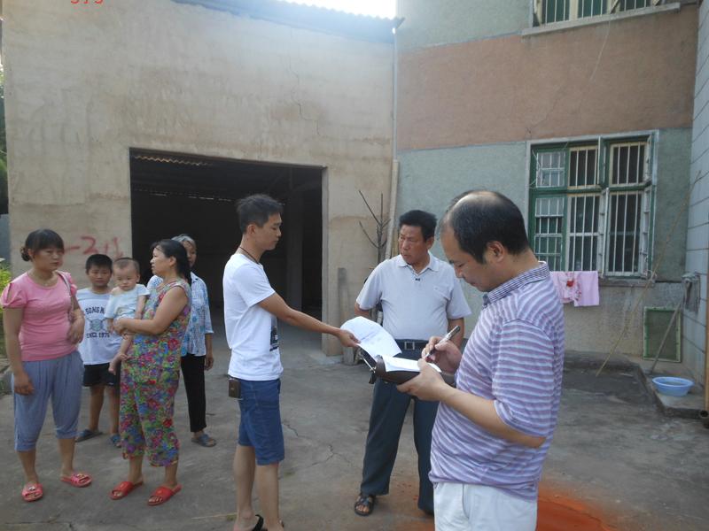 芦淞征拆所工作人员在机场大道拆迁户家送拆迁款,同时进行公证