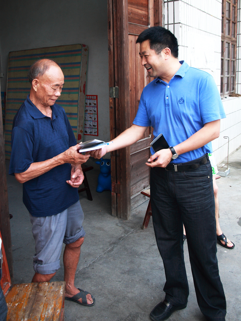 8月26日,局党组书记、局长何安国在攸县柏市镇温水村查看地质灾害隐患点情况,为当地老百姓送上《地质灾害防灾手册》
