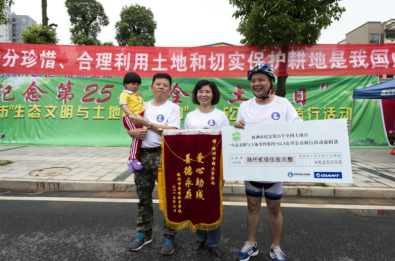 我局组织全市百余名骑行爱好者,冒着风雨开展健康骑行62.5公里的活动,并现场为残疾小朋友募捐善款6250元,以此倡导节约集约用地、建设生态文明的美好家园的理念。