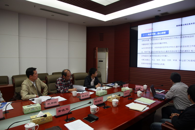 4月11日上午,国家土地督察武汉局副专员杭邦明一行来我市实地督导永久基本农田划定工作,省国土资源厅耕地保护处副处长杨利民主持永久基本农田划定工作情况汇报会,市国土局、市发改委、市财政局、市环保局、市住建局、市交通局、市水务局、市林业局、市农业委、城市各区国土分局,株洲县政府、株洲县国土局等部门主要负责人参加会议。