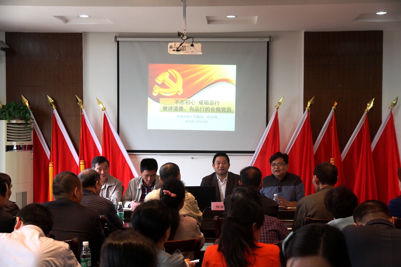 寒露已过,秋意渐浓,10月14日这天,天元区嵩山街道小湖塘社区服务工作站的会议室里,却是一派热闹景象,来自社区的相关负责人、党员干部、群众代表40余人齐聚一堂,共同聆听市国土资源局党组书记、局长何安国带来的一堂生动的“讲道德、有品行”党课。
