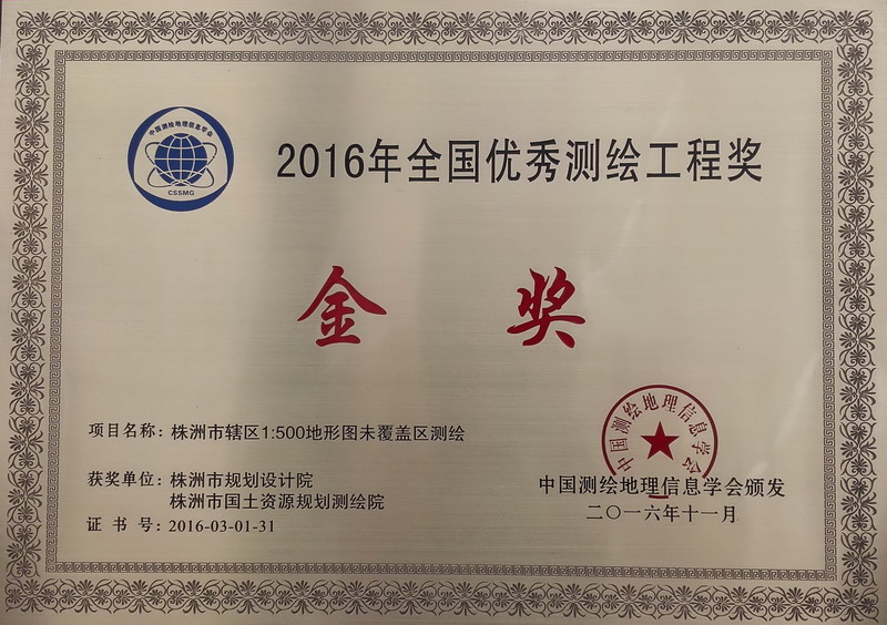 株洲基础测绘喜获全国优秀测绘工程金奖