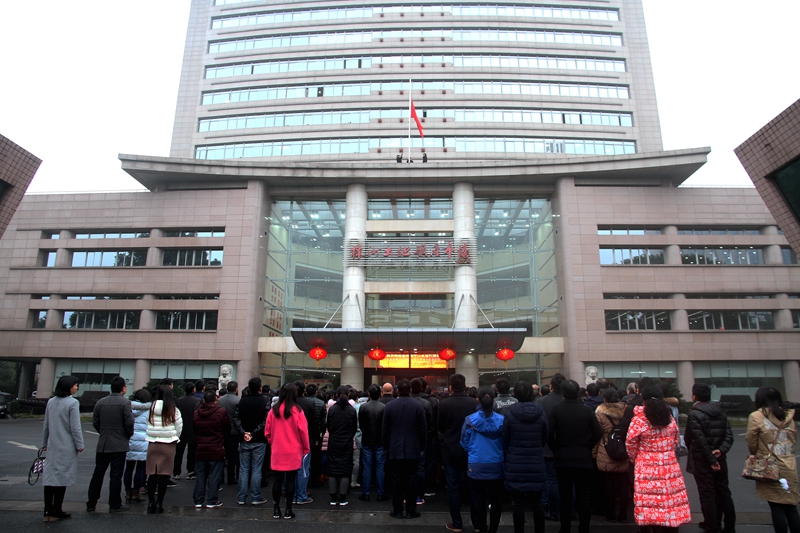 升旗仪式隆重而简约,全员参与,体现了神圣感和荣誉感,时间不长,不耽误大家的工作,成为株洲市国土资源局近年来一贯坚持的新年团拜新形式。(局办公室 丁林)