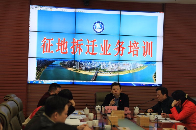 2 月8 日,我局举办征地拆迁业务培训。全市所有重点项目协调领导小组成员,工业园、征收办相关人员,国土所所长、征拆业务骨干共30余人参加培训。