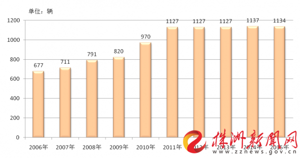 2006-2015年株洲市区公交车拥有量发展图(图来源/株洲市规划局) 《报告》显示,截至2015年底,株洲市区公交车辆达到1134辆,换算成标准车为1396标台,万人拥有率为11.33标台/万人(按市区常住人口123.19万人计算)。市区公交年运量为21516万人次,比上年降低134万人次,降低幅度为0.62%。 市区出租车辆为2055台,比上年增加100台。年客运量8525万人次。网络约车对传统出租车的影响初步显现,出租车单车平均载客次数114人次,比上年降低10.2%。 全市发生交通事故较上年减少14.8%