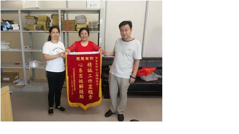 “真的特别感谢你们这些工作人员呀!为我卸下了这块烦心石”。近日,郭佳秀女士专程来到市不动产登记中心,送上锦旗表示感谢,称赞登记一科工作人员“精诚工作尽职责 心系百姓解疑难”,为她办好了不动产权证书。