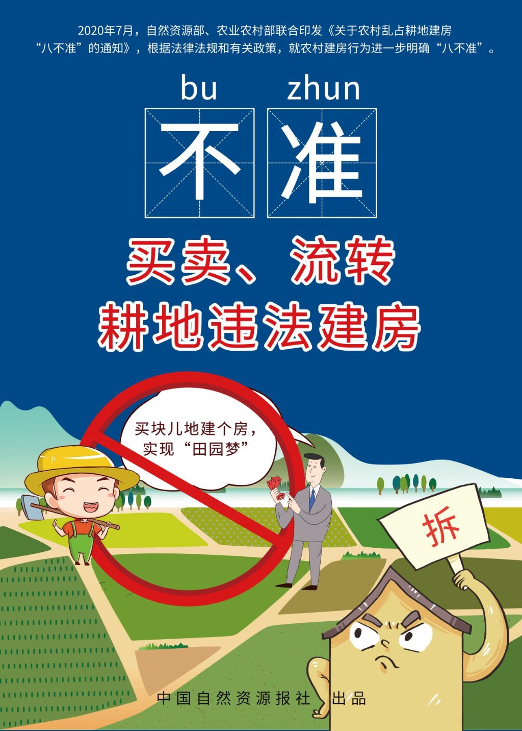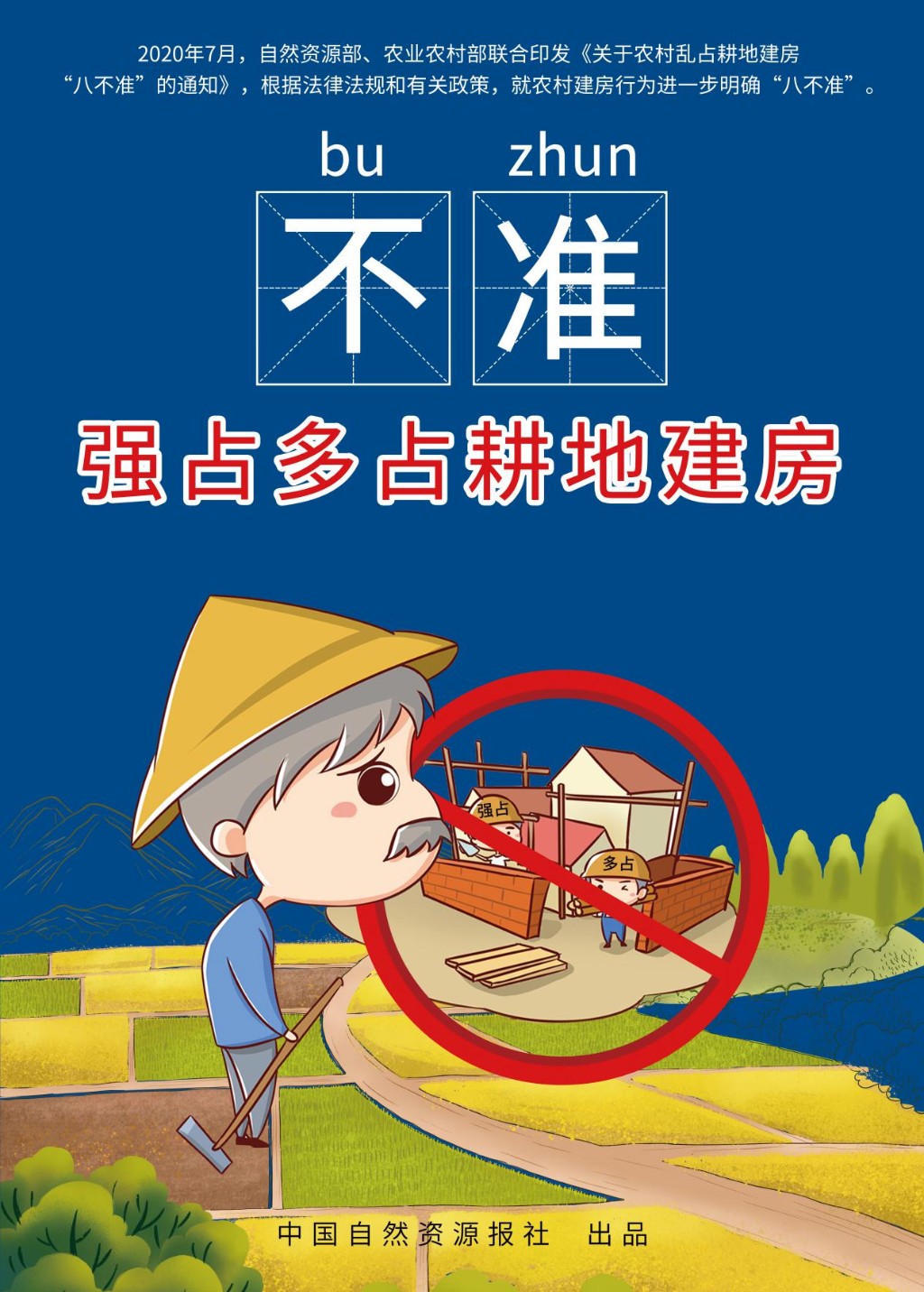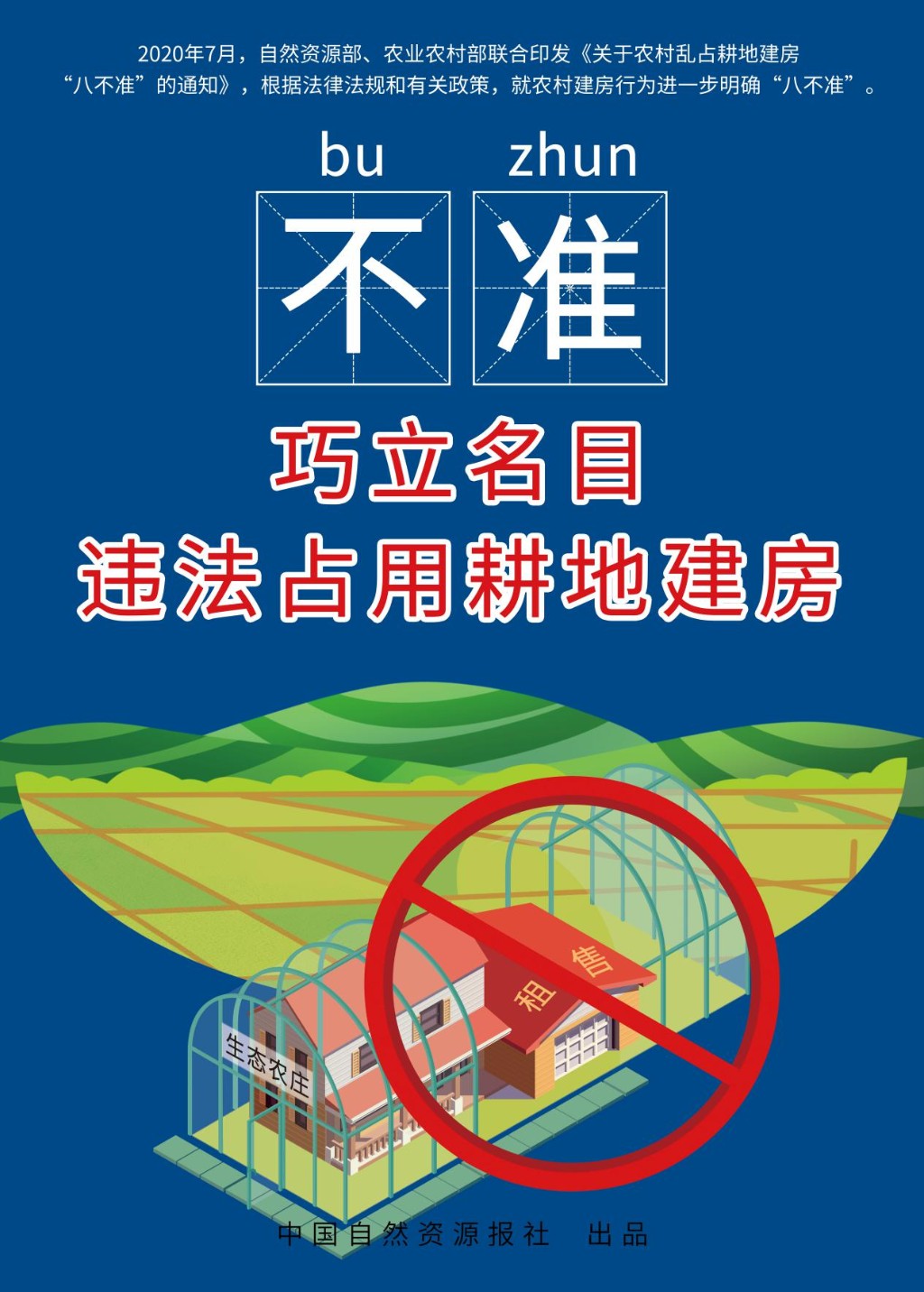 2020年7月,自然资源部、农业农村部联合印发了《关于农村乱占耕地建房“八不准”的通知》,根据法律法规和有关政策,就农村建房行为进一步明确“八不准”。