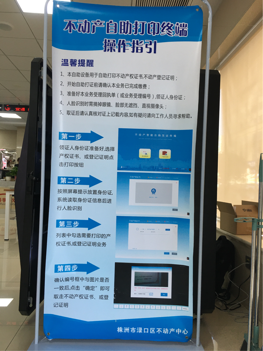 为创新服务举措,进一步优化营商环境,提高登记工作质量,近日,自助打证机在渌口区政务中心不动产登记大厅正式“上岗”。