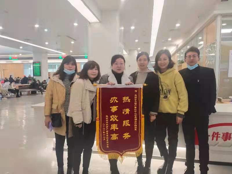 2020年12月28日上午,株洲市行政资产经营有限责任公司工作人员将一面写有“热情服务,办事效率高”的锦旗送到了不动产登记中心大厅窗口。对株洲市自然资源和规划局不动产登记中心表示由衷的赞许及感谢。