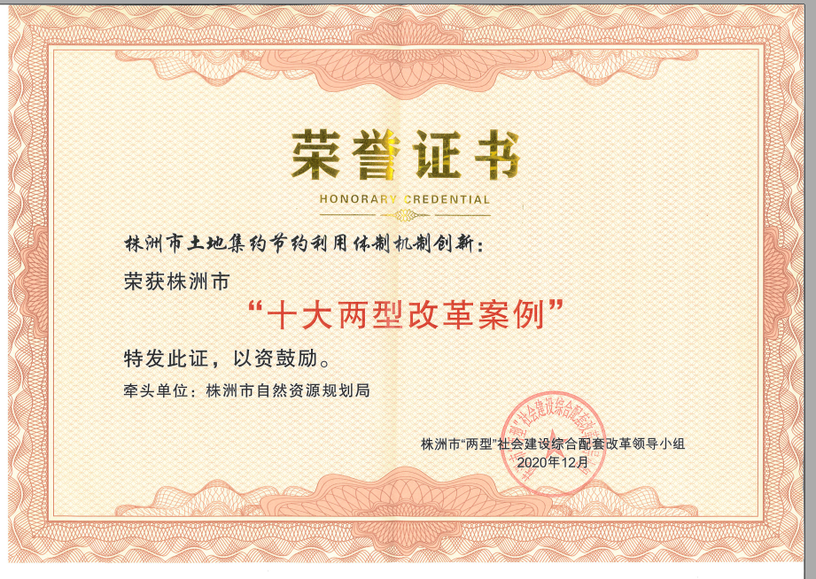 我市土地节约集约利用体制机制创新荣获株洲市“十大两型改革案例”