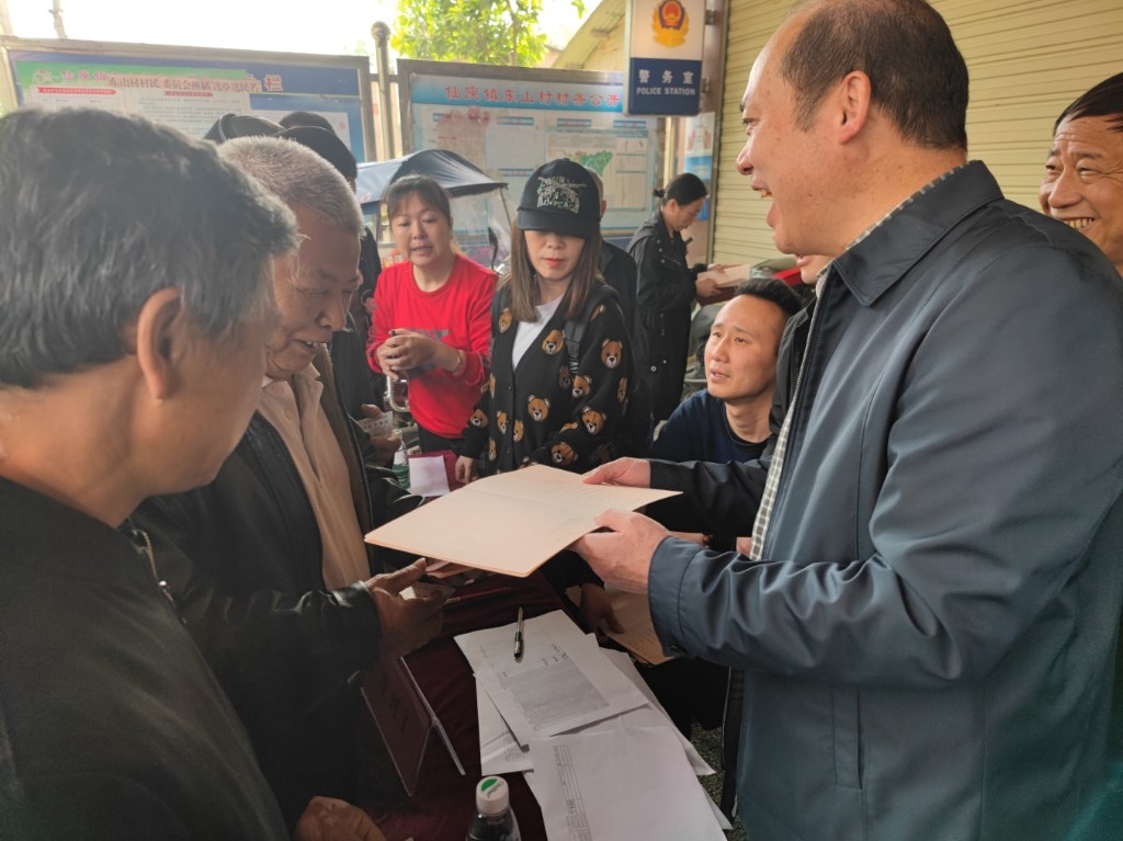 4月29日上午,株洲市自然资源和规划局在荷塘区仙庾镇东山村开展了“送证下乡”活动,将农村宅基地房地一体不动产证送到每位村民手中,村民们在家门口就能领到“红本本”,纷纷表示感受到了政府的关怀,心里暖暖的。