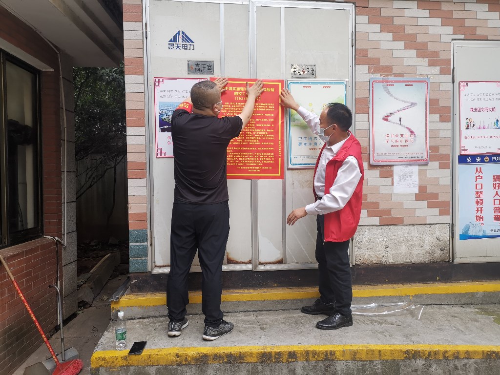 (工作队在社区人口密集处和各小区楼栋张贴并发放
