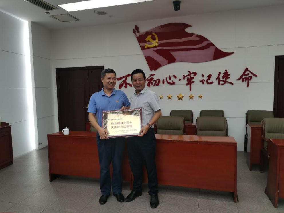 9月24日上午,云龙示范区党工委委员、管委会副主任章定良一行专程来到市自然资源和规划局,向我局赠送“鼎力相助心连心 风雨同舟战疫情”牌匾,局党组书记、副局长黄升阳,局党组成员、副局长何若愚参与会议。