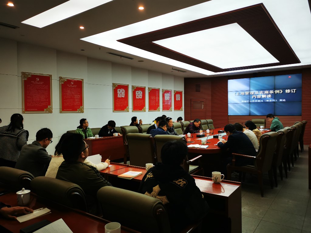 黄革平强调业务学习要注重法律学习,要将《中华人民共和国土地管理法》《中华人民共和国土地管理法实施条例》和《中华人民共和国城乡规划法》放在一起联合学习,同时运用案例对实施条例的修订内容进行了进一步解读。