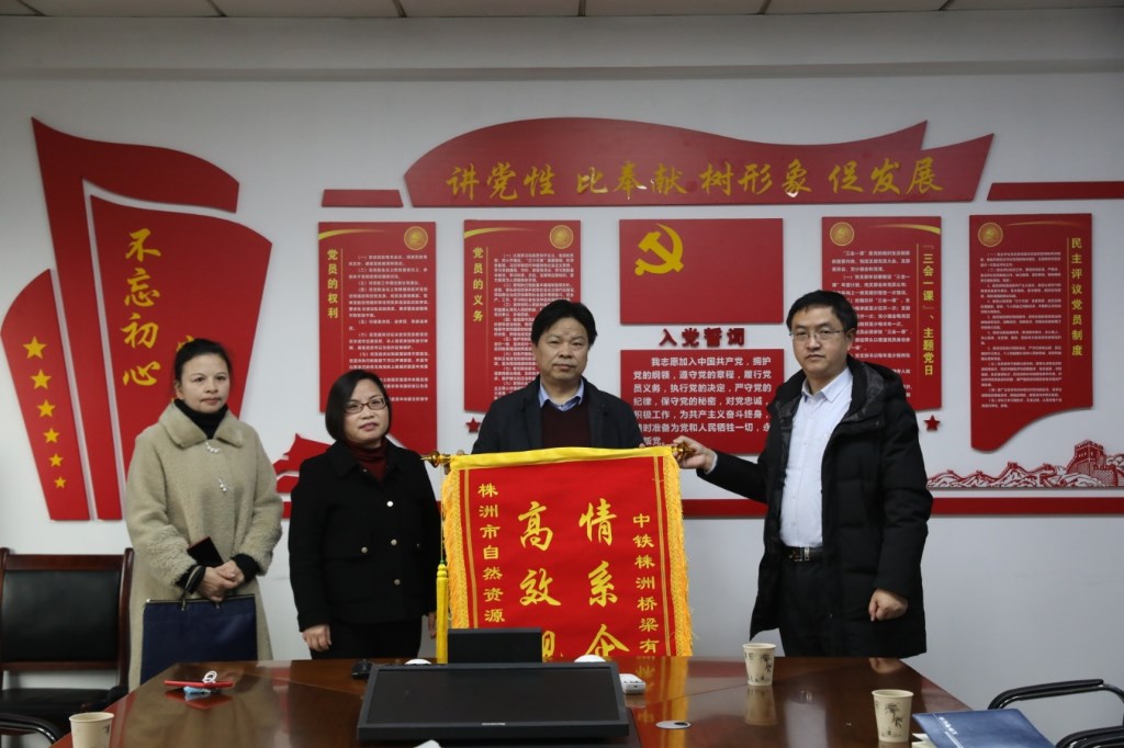 2月25日上午,中铁株洲桥梁有限公司来到市自然资源和规划局,送来了“高效规范 情系企业”锦旗,对帮其解决了多年悬而未决的历史遗留问题表示感谢。今年,是我市“市场主体培育年”,我局立足职责,主动作为,推行“四个全面”,持续优化确权登记工作,助力市场主体培育。