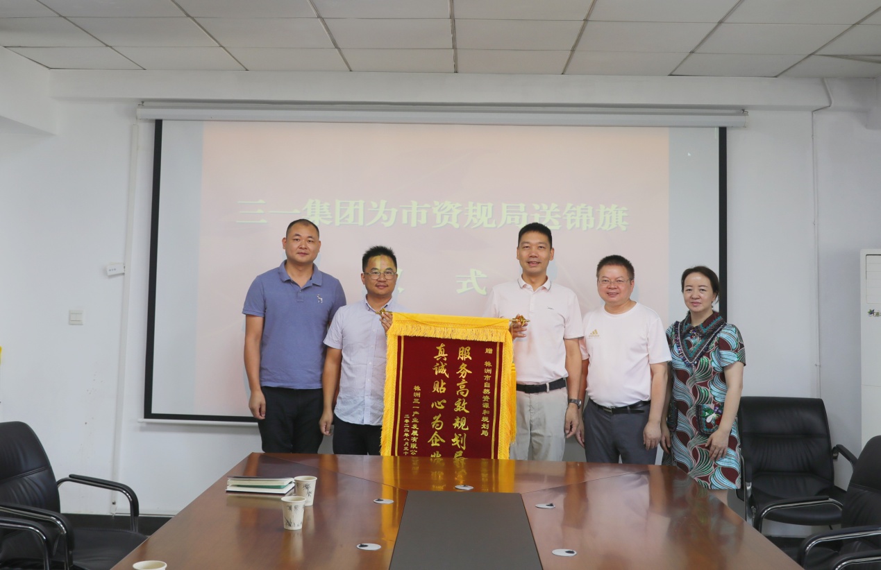 9月1日,株洲三一产业发展有限公司将一面印有"服务高效资规局 真诚贴心为企业"的锦旗送到了市自然资源和规划局总规划师张金望手上,感谢市自然资源和规划局想企业所想、急企业所急,在项目审批办理过程中提供优质高效审批服务。