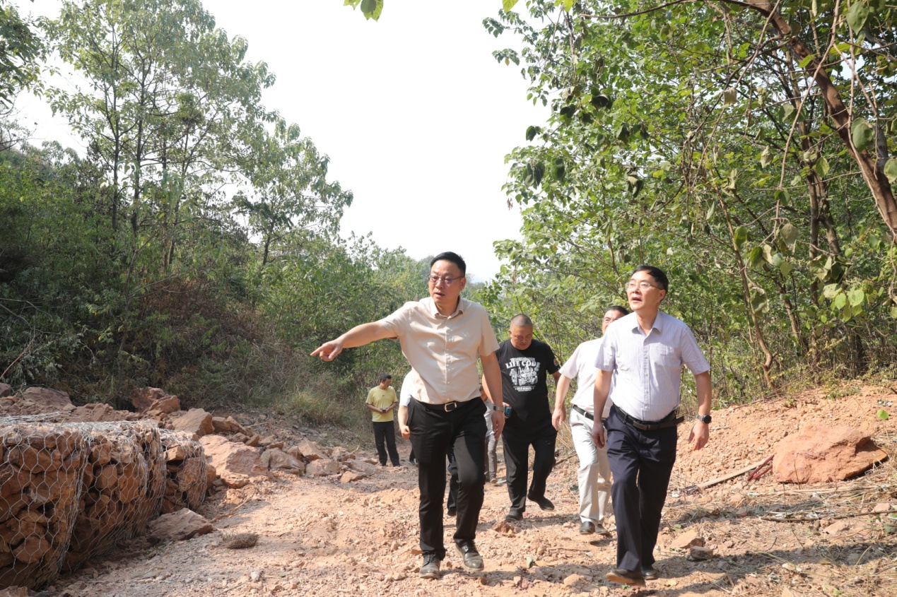 邓建华一行实地查看了石峰区大冲村历史遗留矿山生态修复项目现场,并与相关负责人员进行深入交流,详细了解石峰区绿心地区生态修复治理进度情况、当前存在的困难问题及相关诉求建议等。