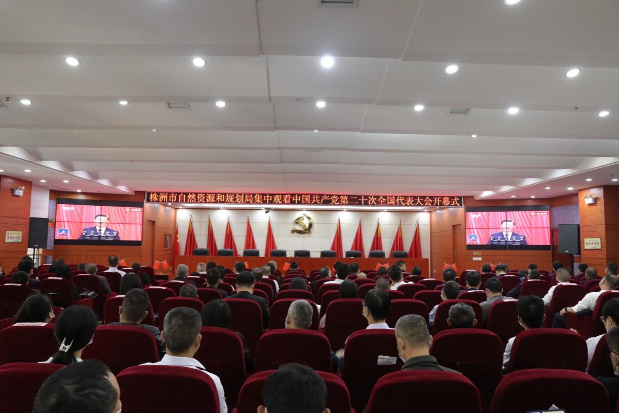 株洲市自然资源和规划局组织全体党员、干部职工,分别在市局、城市四区局、不动产登记中心、规划展览馆等8个会场,集中收看收听党的二十大开幕盛况。中午,局党组理论学习中心组开展第十三次集中(扩大)学习,第一时间专题学习研讨党的二十大精神,研究部署学习贯彻落实措施。