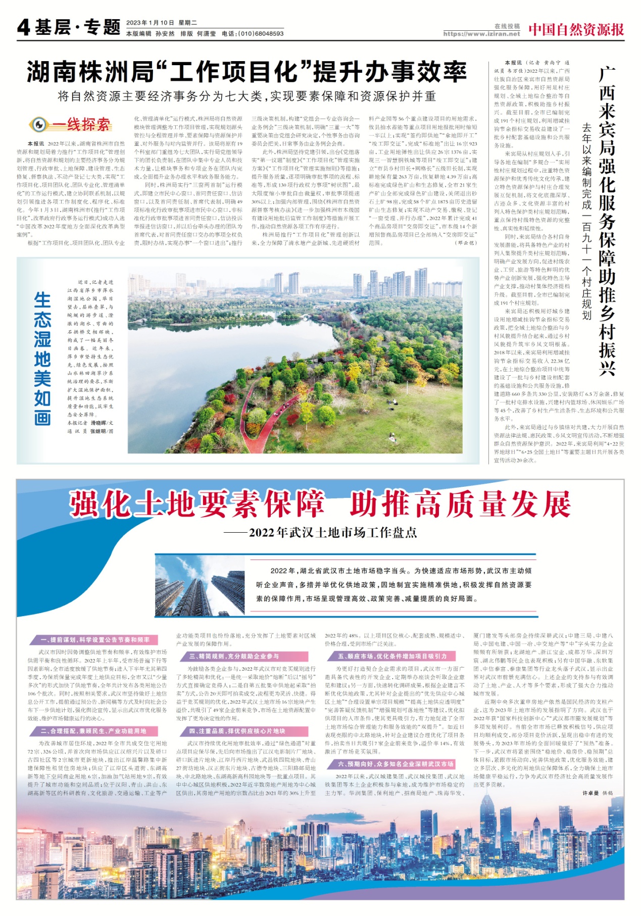 1月10日,《中国自然资源报》在"基层"版块头条,重磅推介株洲市资规局提升办事效率,将自然资源主要经济事务分为七大类,实现要素保障和资源保护并重典型经验。