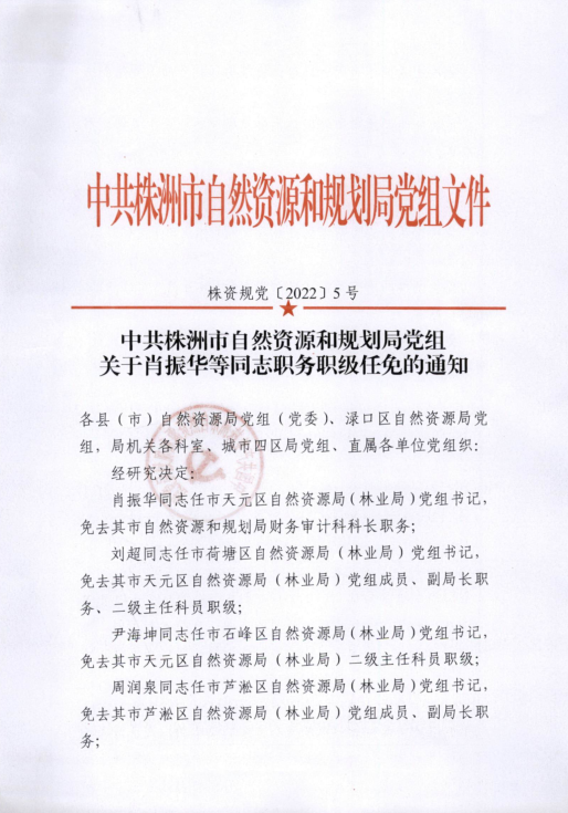 关于肖振华等同志职务职级任免的通知(株资规党[2022]5号)