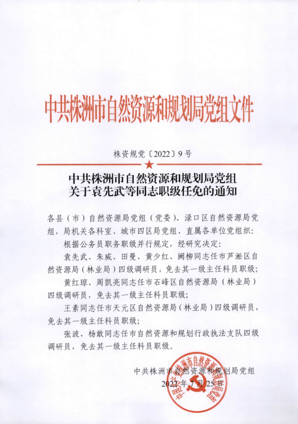 关于袁先武等同志职级任免的通知(株资规党[2022]9号)